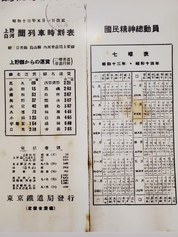 (上)1938(昭和13)年に東京鉄道が発行した東北線の時刻表。こちらは下り列車の時刻表で、上り列車同様、通過を意味する↓がずらりと並んでいます。東北本線の列車で浦和駅に停車するのは15時58 分発の上野発日光行き、17時04分発の上野発日光・福島行きの2本だけ。高崎線も15時34分発の上野発前橋経由小山・信越本線経由直江津行き16時44分発の上野発長岡行きの2本に限られていました