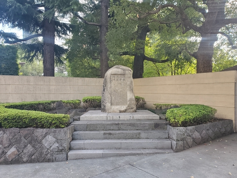此処を後にし、坂に向かう途中、参議院議長公邸の東門前に石碑が見えた。