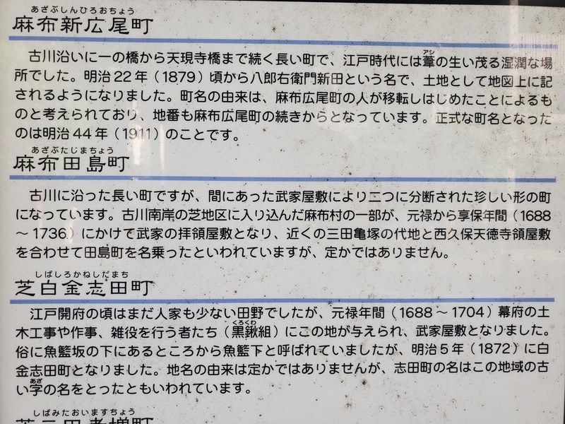 以前の記事では紹介していなかった港区旧町名由来板。